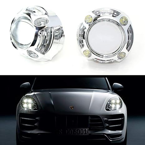Ijdmtoy 2 3 0 Inch H1 Bi Xenon Hid Projector Lens W Cayenne Style 4 Led Daytime Running Light Shroud For Headlight Retrofit Custom Headlamps