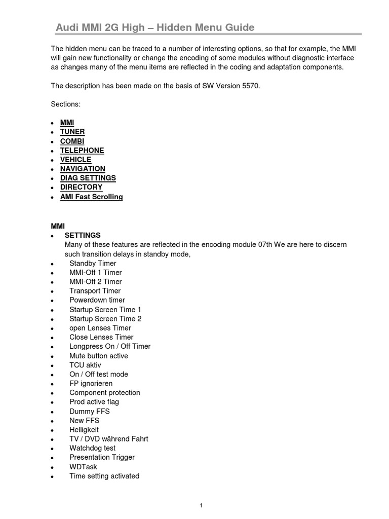 Audi A1 A4 A5 A6 A7 A8 Q3 Q5 Q7 Hidden Menu Mmi 3g
