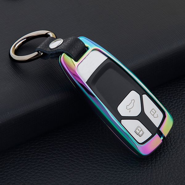 Details About Alloy Leather Car Remote Key Fob Case Holder Cover Keyless Fit 2017 Audi Q7 A4l